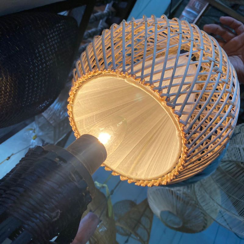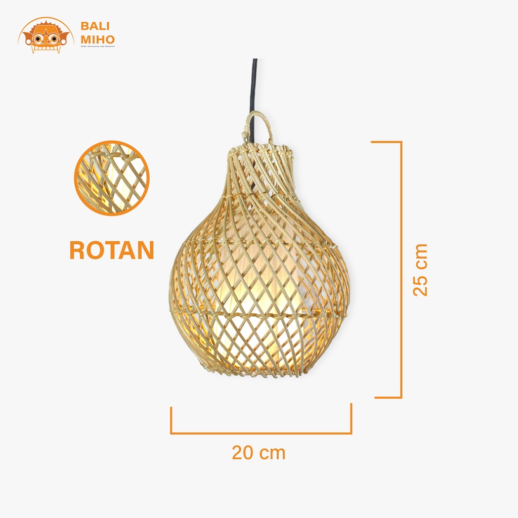KAP LAMPU BAWANG ROTAN DAN KAIN 20 CM - KAP LAMPU CAFE - RATTAN LAMP - LAMPU ROTAN - LAMPU BAMBU - LAMPU KAYU