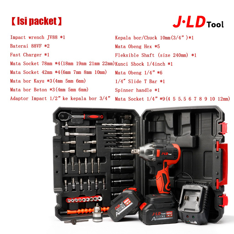 JLD 47Pcs Impact baterai Set 88VF Brushless Impact jld JV88 2baterai 13MM Impact wrench Cordless