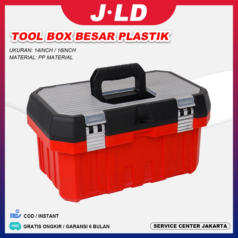 JLD Tool Box besar plastik 14inch/16inch Bahan PP Toolbox Kotak Peralatan Perkakas/kotak perkakas