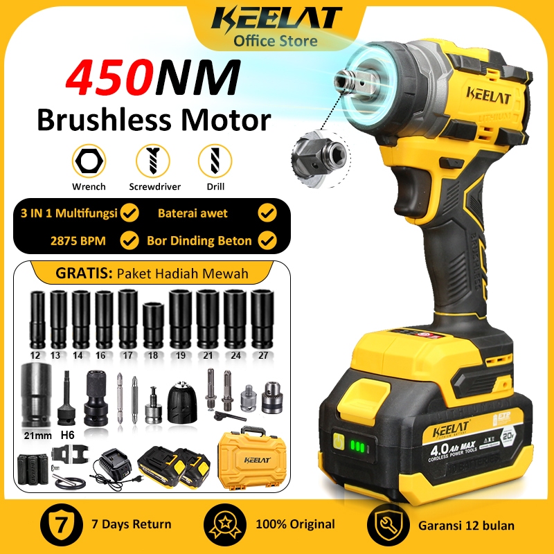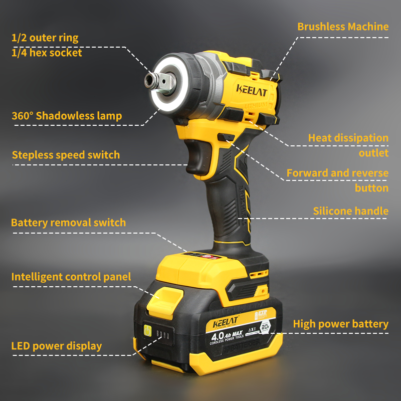 KEELAT KID013 450N.M Cordless Impact Wrench Brushless 20V Battery Impact Screwdriver Drill MOBIL Ban
