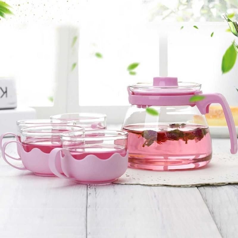 Teko Set Kaca Cangkir 4 In 1 Premium Kaca Tebal / Tea Pot Set 1 Teko 4 Cangkir Elegant