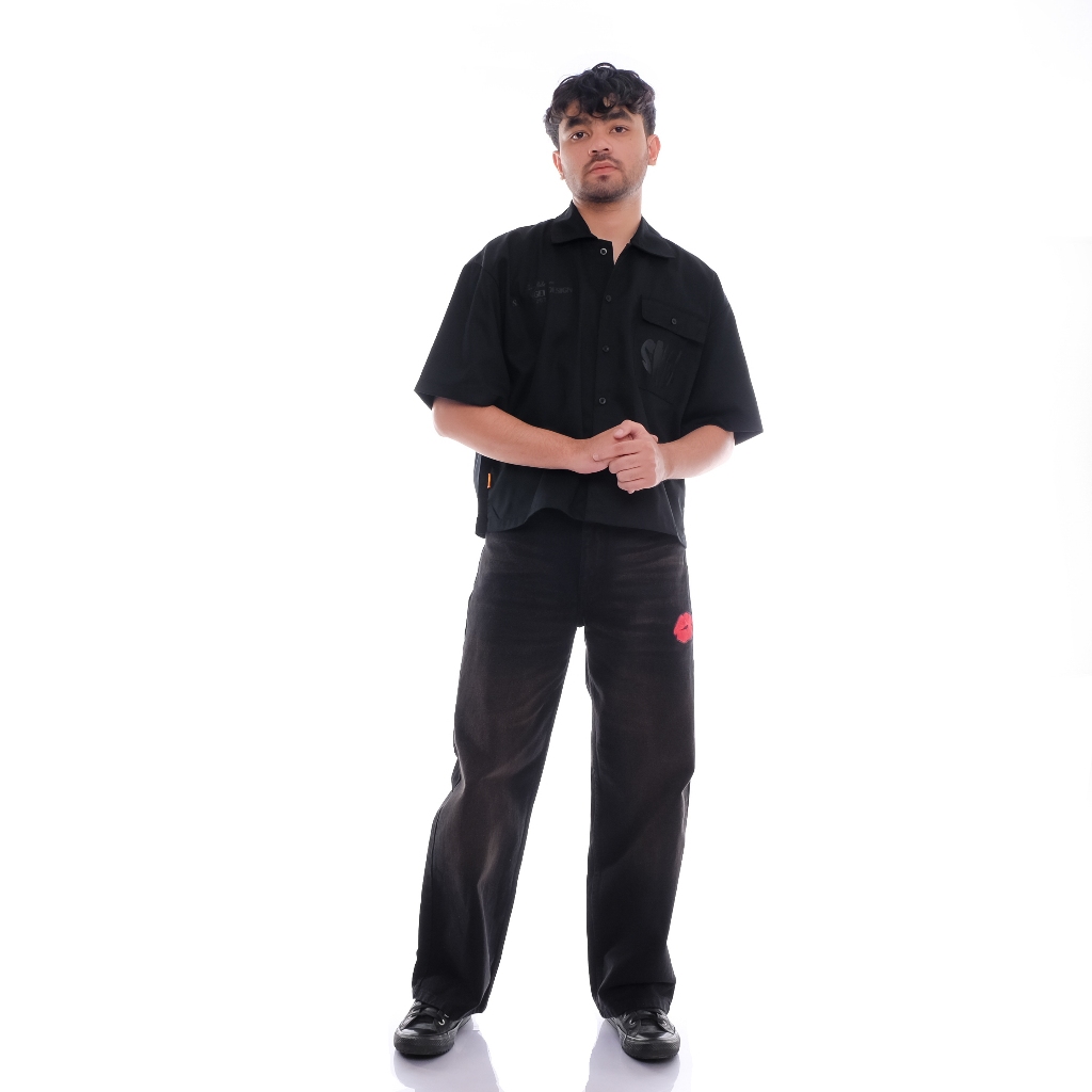 CHICKCOOL - BLACK THINK RETRO - Celana Baggy Jeans Loose Jeans Garment Think Retro - UNISEX JEANS