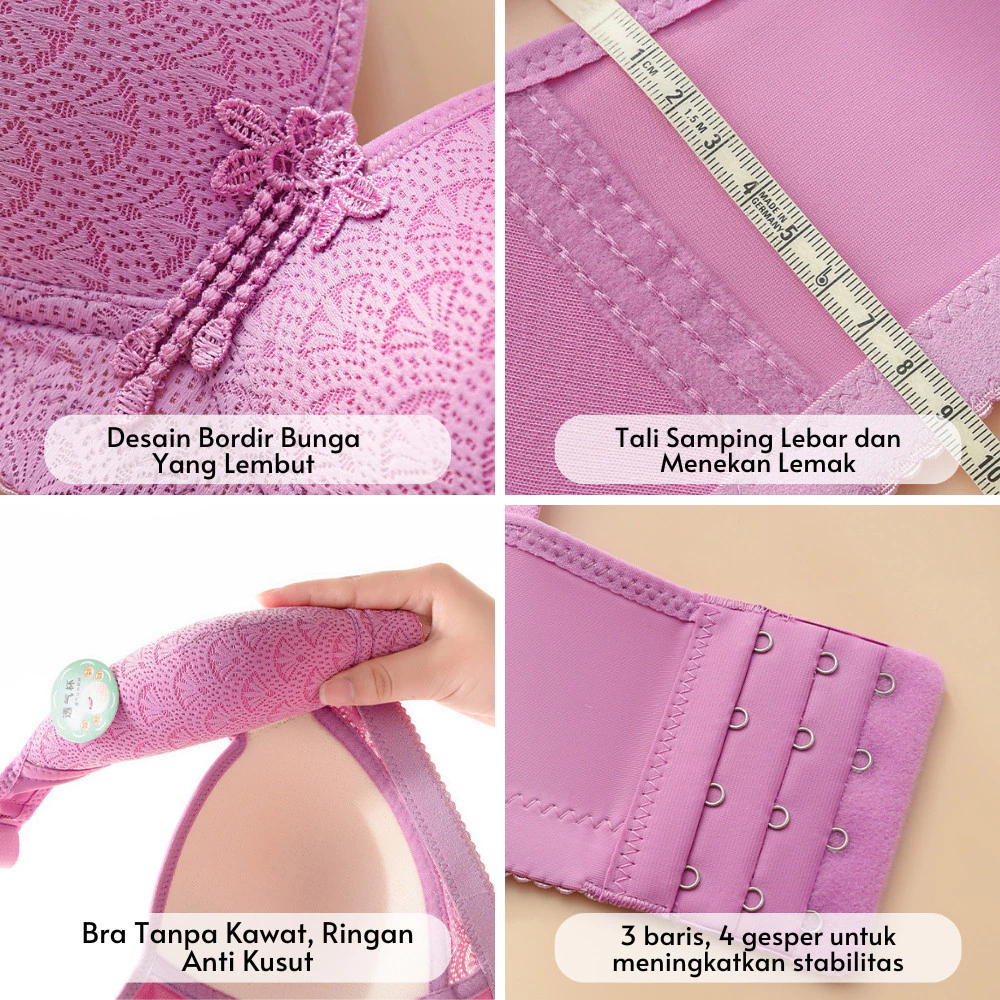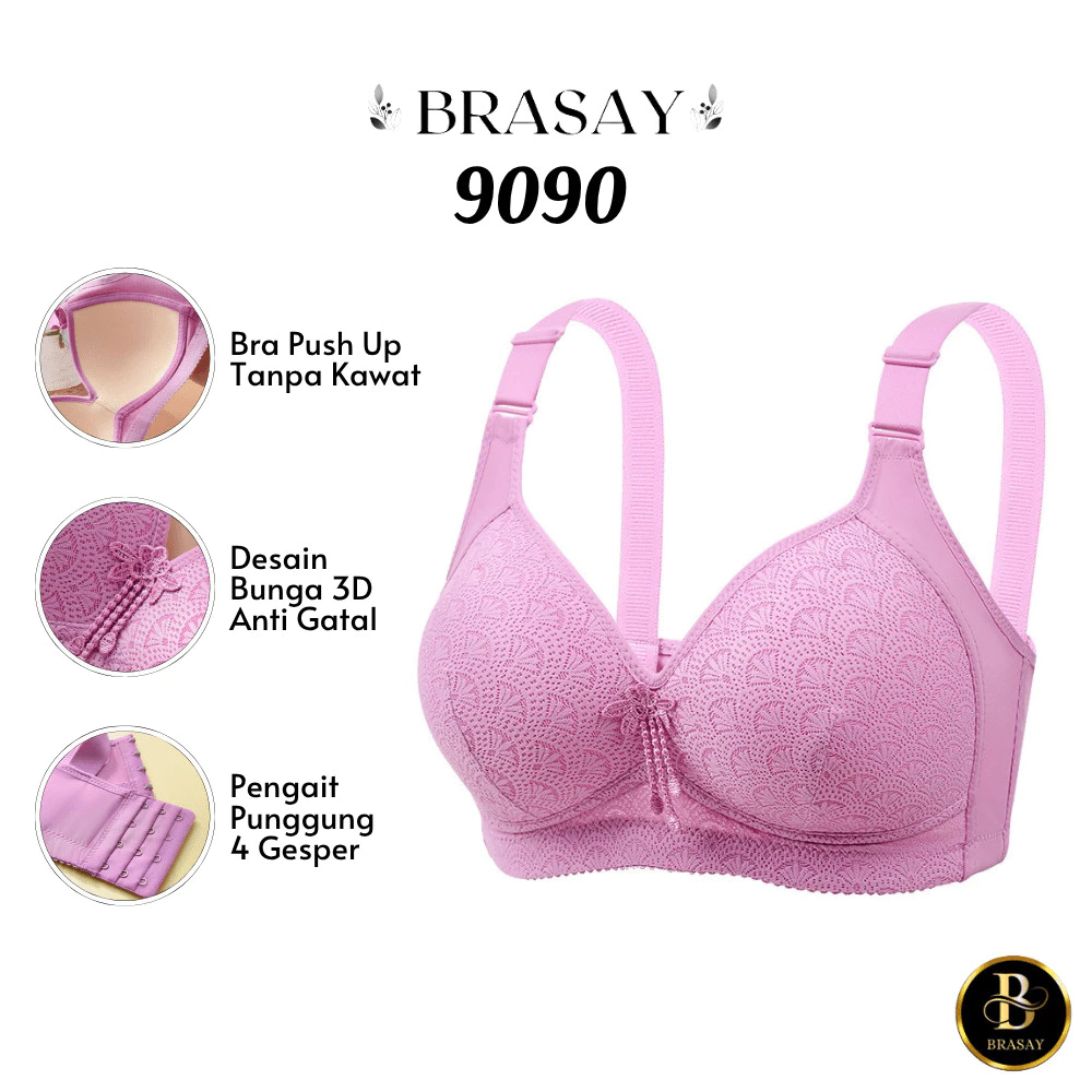 Brasay Bra Push Up Gesper Depan Anti Kendur Wanita Motif Bunga Bra Seamless 9090
