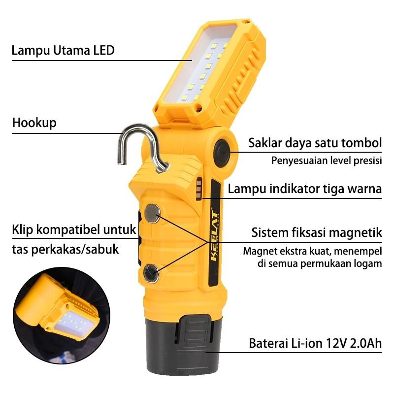 KEELAT-KCWL02 Lampu LED Outdoor dengan baterai, sangat terang, Kecil dan mudah dibawa, dilengkapi dengan pengait
