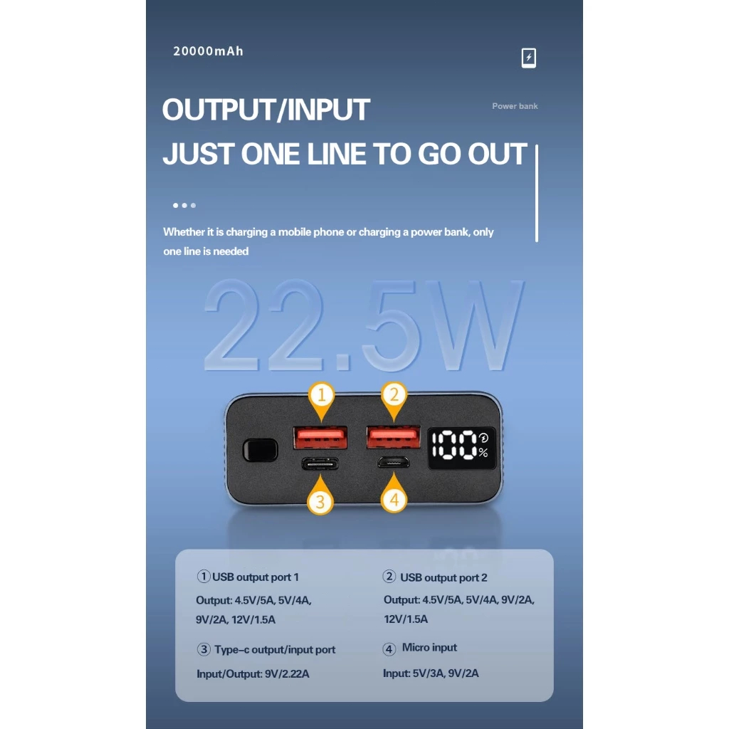POWERBANK PORTABEL BATERAI LITHIUM (20000MAH/22,5W) PB SOLAR ORIGINAL