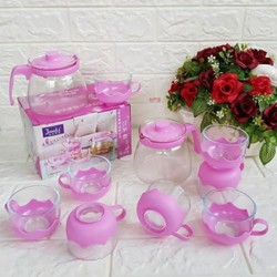 Tea Pot Set 5 In 1 Sun Glass - Paket Teko Gelas Cangkir Tempat Minum - Teapot All In One