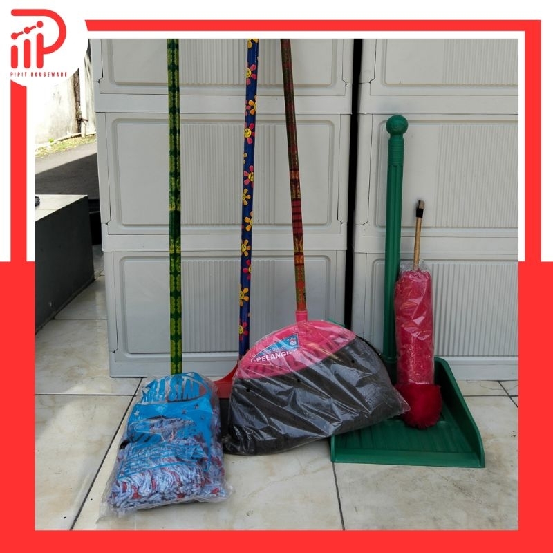 Paket alat kebersihan, sapu, pel, serok air, serok sampah, kemoceng Harga murah meriah