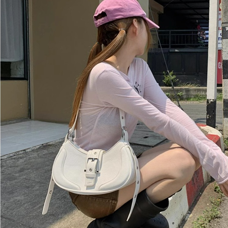 Fashion Baru Tas Bahu Wanita Sederhana Tas Wanita Komuter Kasual Tas Selempang Bulan Sabit Ceruk Seratus Wanita Tas Sel