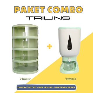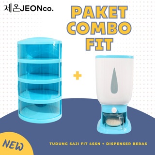 PAKET HAMPERS COMBO FIT Dispenser Beras 10 KG + Tudung Saji FIT 4 Susun Tempat Penyimpanan Makanan