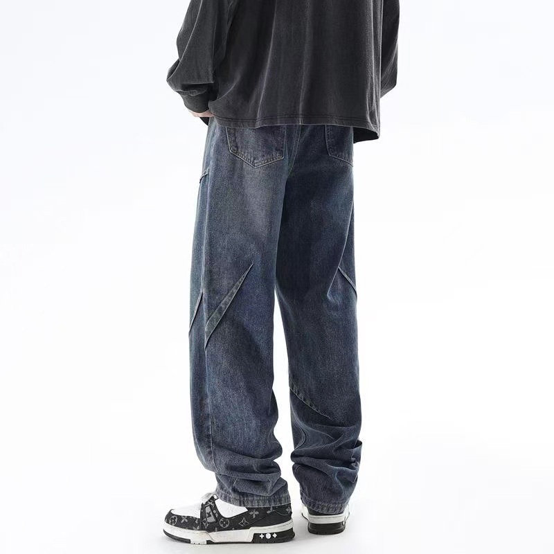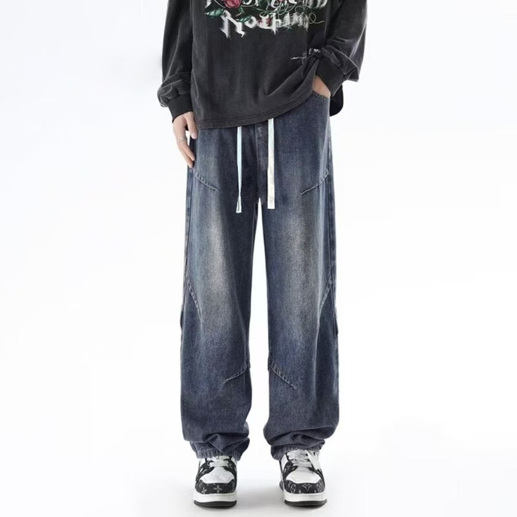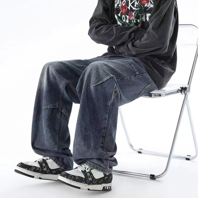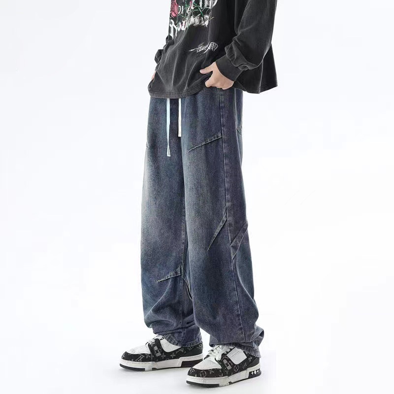 KeyBoy celana jeans pria panjang baggy straight celana cowok dewasa pinggang karet casual denim pants korean style