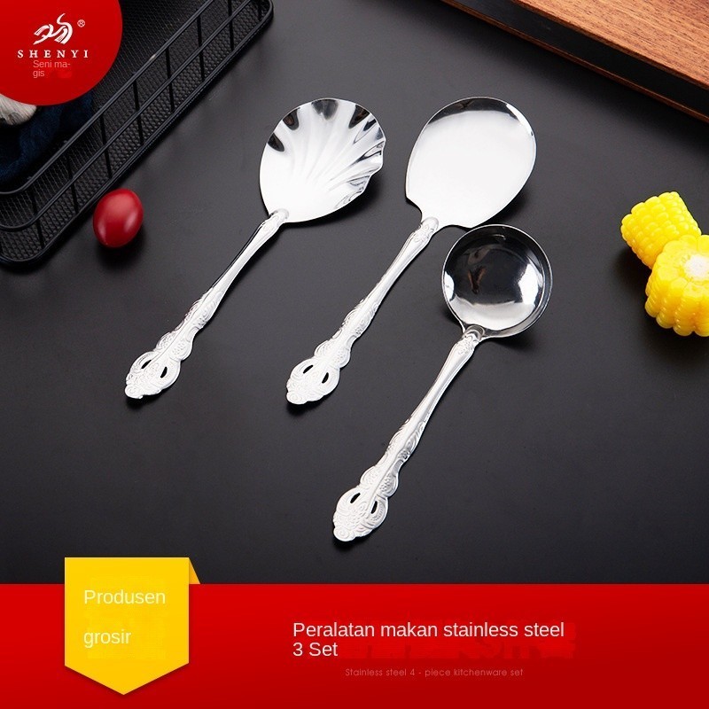 Dapurku Lengkap - Stainless Steel Tiga Buah Set Dapur Peralatan Makan Cangkang Sendok Stainless Steel Sendok Piring Rumah Tangga Grosir