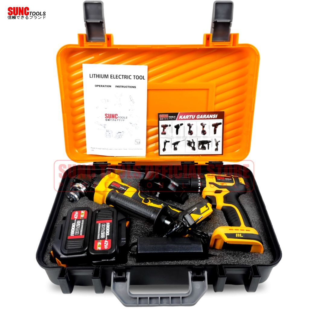 SUNC TOOLS Mesin Bor Baterai Cordless Drill 42VF + Mesin Gerinda Angle Grinder