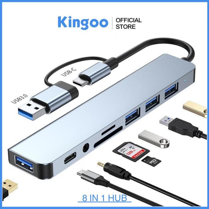 Converter Hub Adapter Multi port 8 in 1 USB Type C ke Usb 3.0 high speed usb hub with audio SD/TF Card Reader