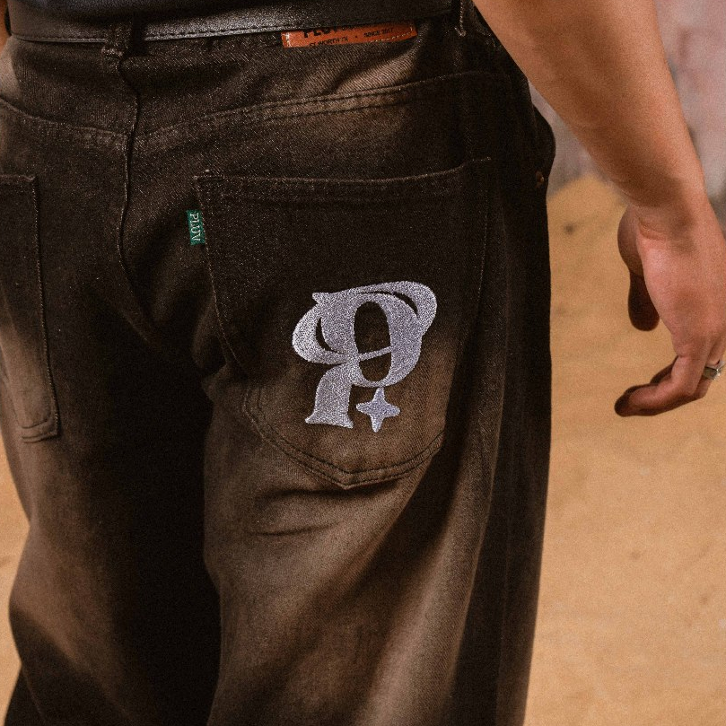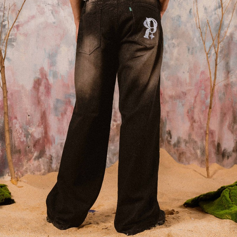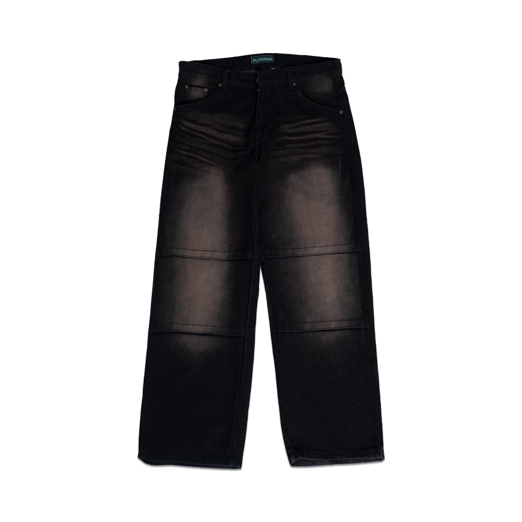 Pluviophile - Celana Baggy Jeans Wide Leg Biothink Retro Strip