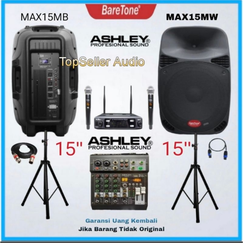 Paket Sound System Karaoke Speaker 15 inch BareTone ( Aktif & Pasif ) Original 2 Mic Wireless Bergaransi 1tahun