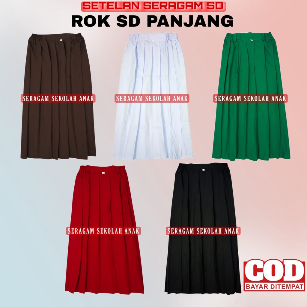 Seragam Sekolah SD Rok Panjang Sekolah SD Perempuan Rok Panjang Rempel Lipit Merah Coklat Hitam Putih Hijau Kelas 1 – 6 SD