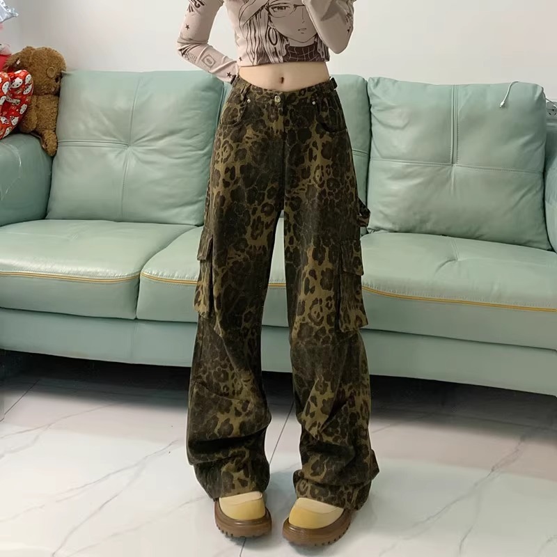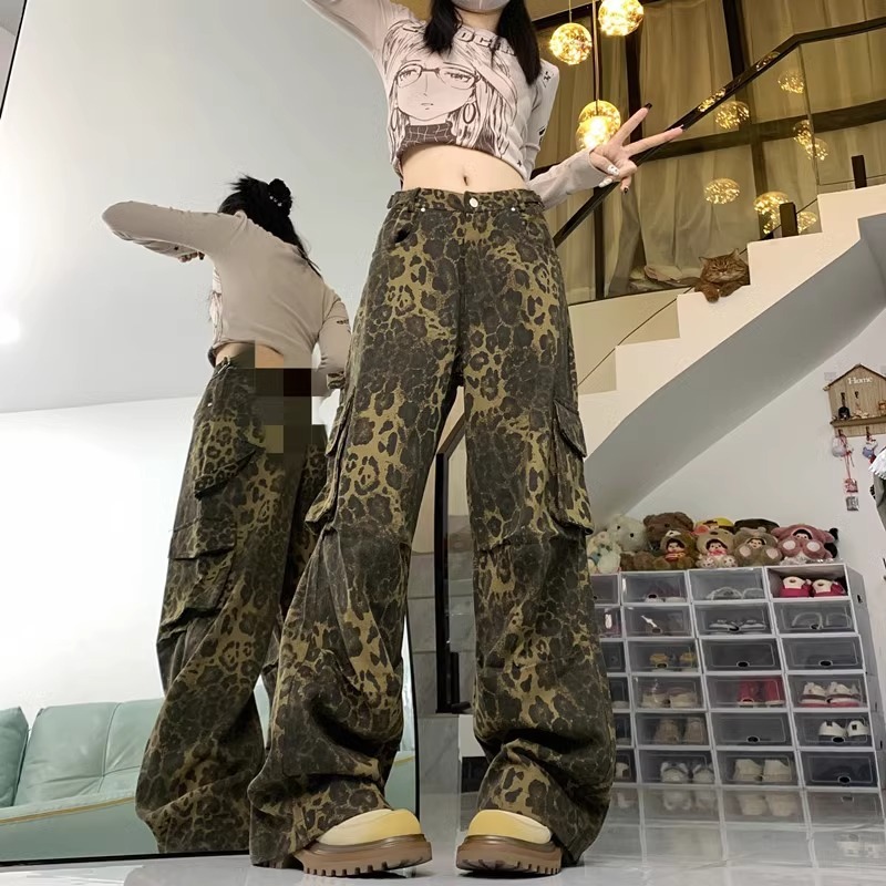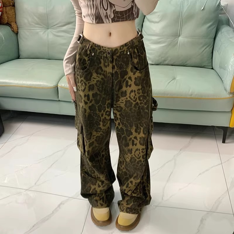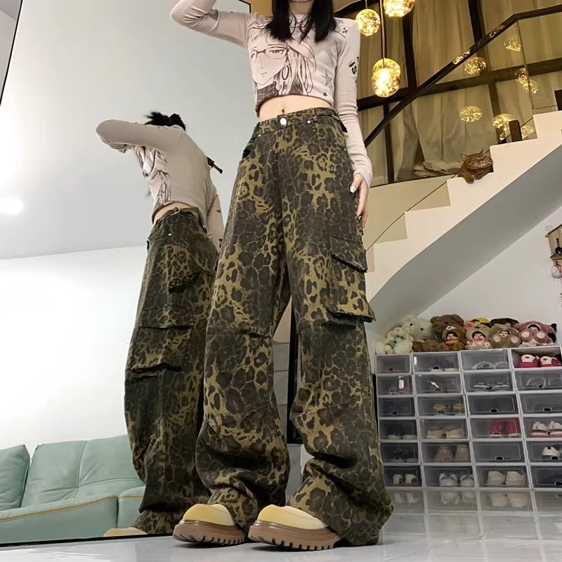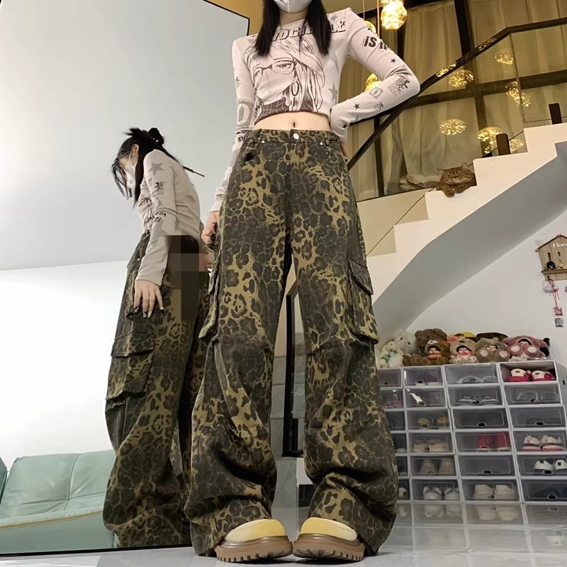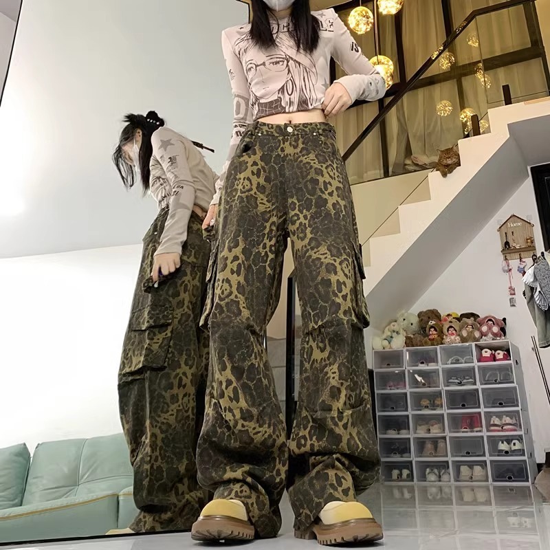Celana jeans motif macan tutul terbaru street style celana cargo baggy wanita