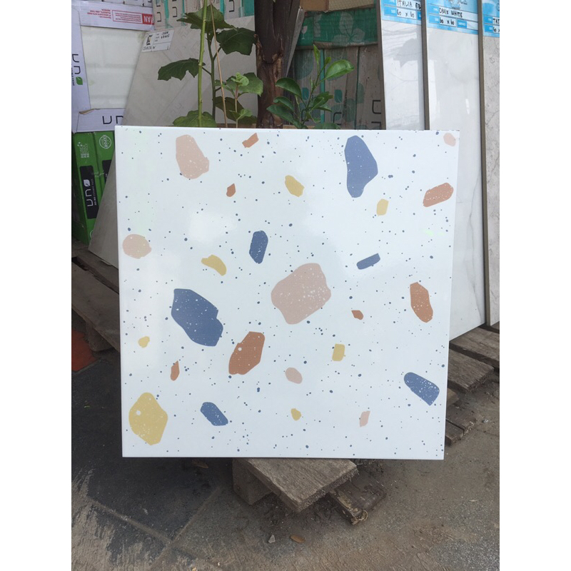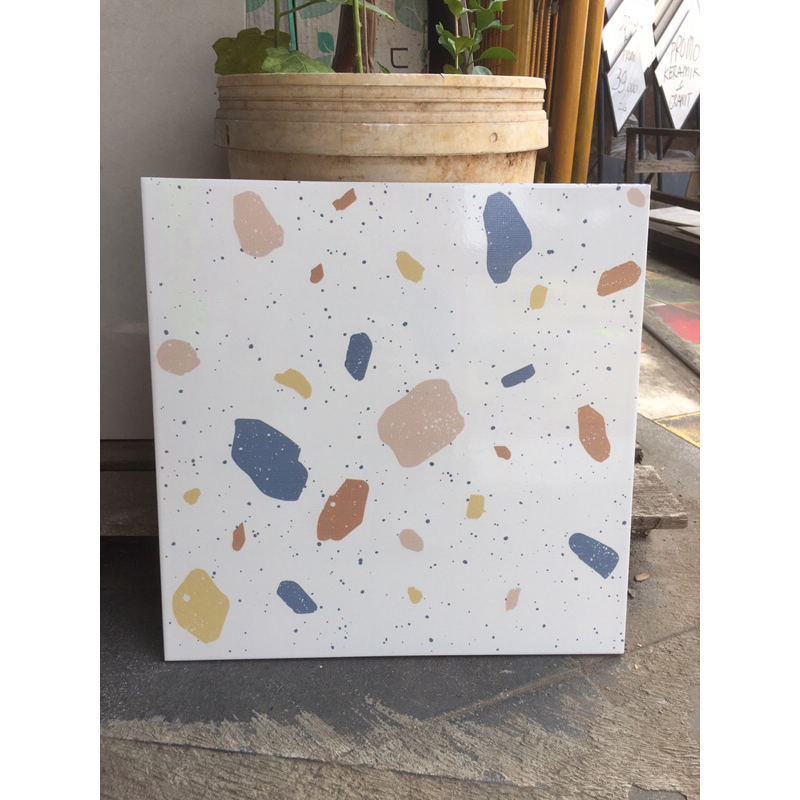 keramik 40x40 lantai dinding dapur toilet wc kamar mandi teras terazzo terazo teraso milan glossy kilap glosy bintik war