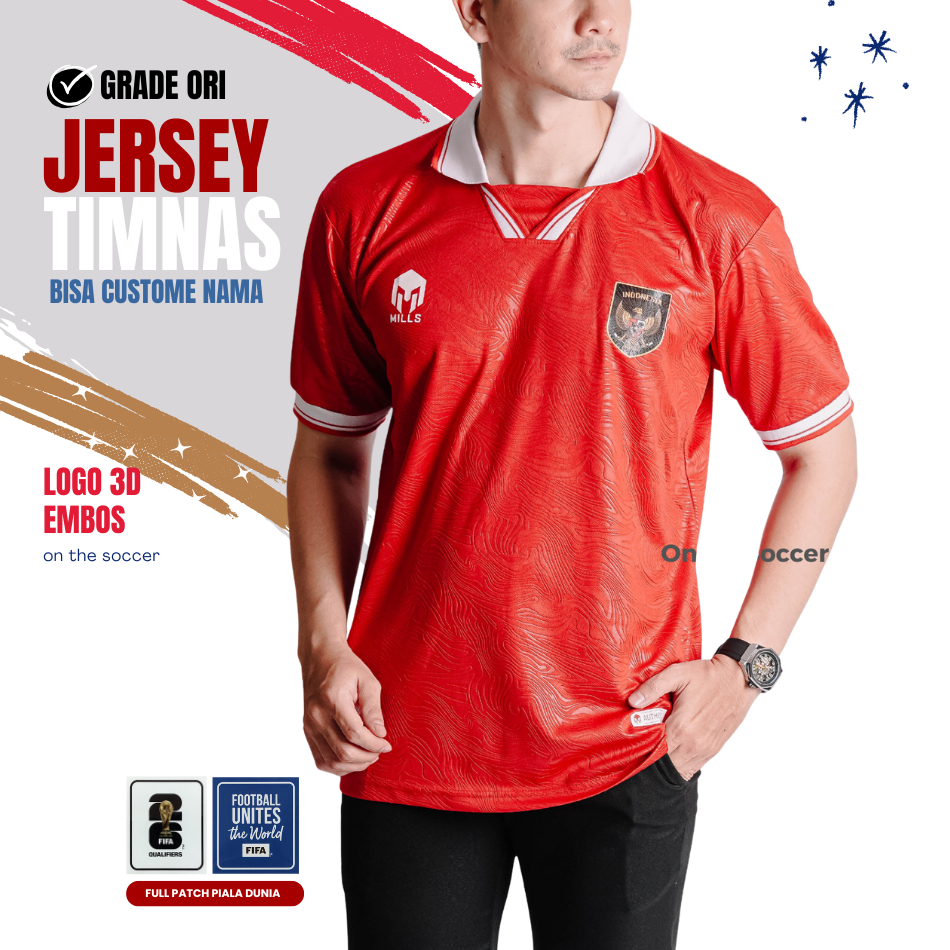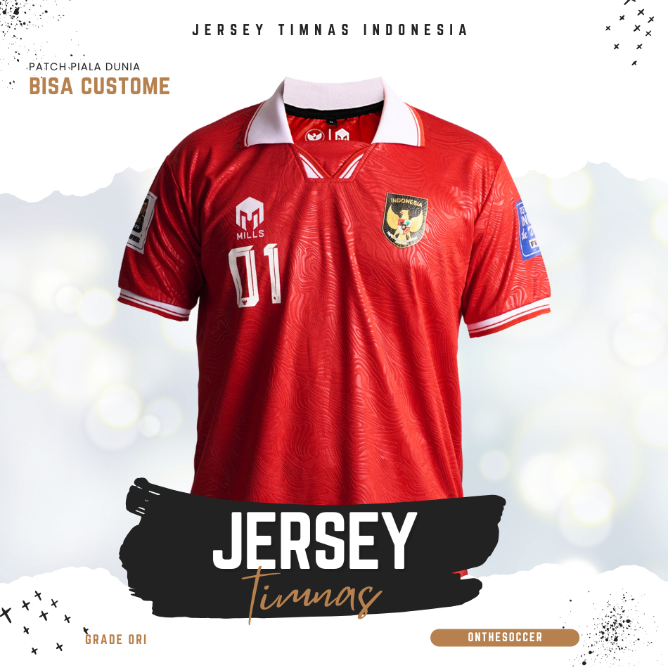 Jersey baju kaos Timnas indonesia Mills Merah Dewasa Big size Over size Pria dan wanita Unisex