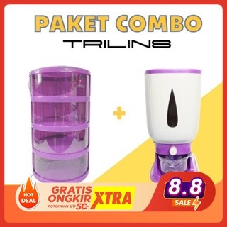 PAKET COMBO FIT Tudung Saji FIT 4 Susun Lebih Tebal Food Grade + Dispenser Beras Penyimpanan Beras