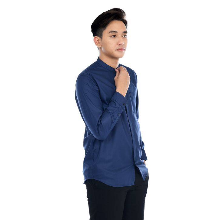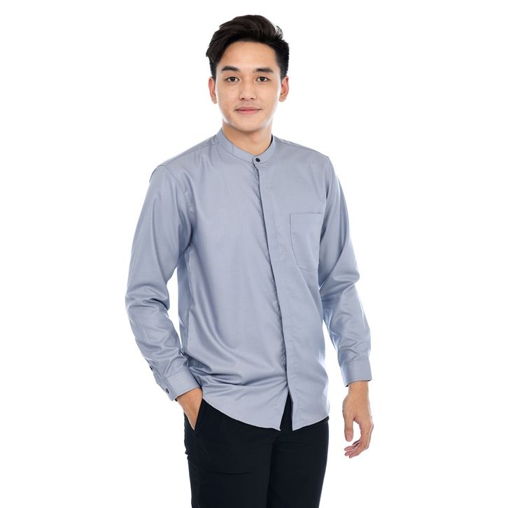 Baju Pria Kemeja Koko Lengan Panjang Motif Polos Bahan Katun Toyobo