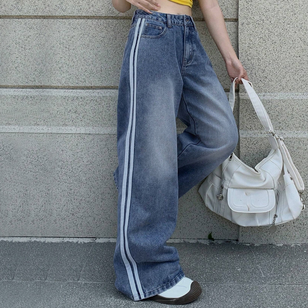 Wide Leg Jeans Wanita High Waitst Retro Style Celana Panjang Jeans