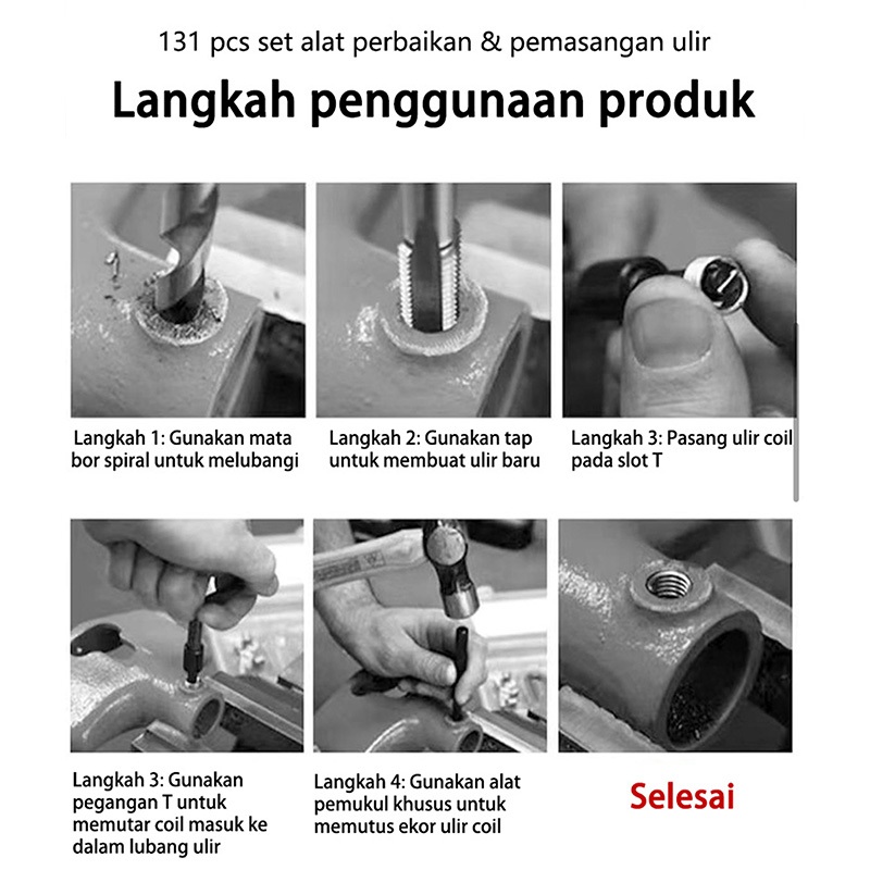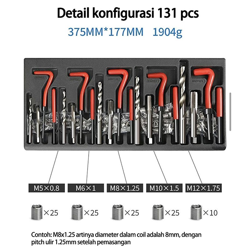 131Pcs Benang Perbaikan Alat Kit Perbaikan Ulir untuk M5 M6 M8 M10 M12 Jenis Benang Alat Perbaikan Kit Perbaikan Berulir Tapping Bor Shank Insert Colokan Motor