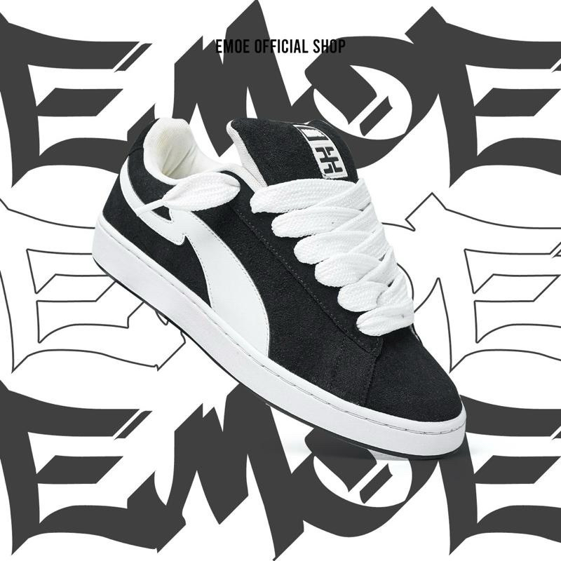 EMOE - EXCEL BLACK-WHITE, Sneakers Pria Wanita Casual Hitam Putih Suede Elegan Shoes Karet
