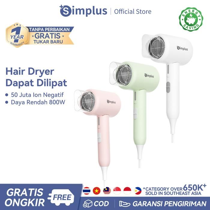 Simplus Hair Dryer Low Watt 800W Foldable Pengering Rambut Dapat Dilipat Perawatan Rambut Dengan 35
