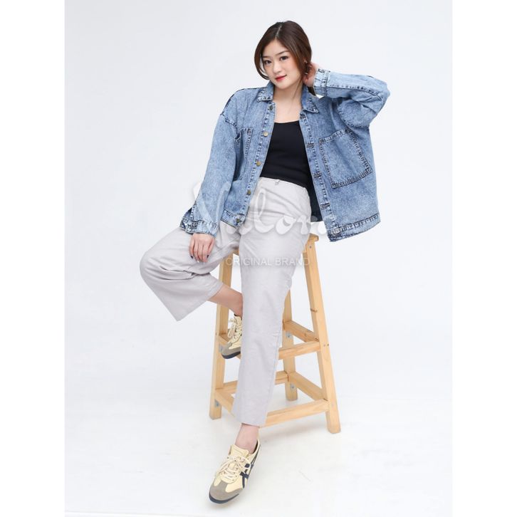 MURAH VALORA - Jaket Jeans Wanita Oversize Kantong Besar Snow Acid OUTERY JACKET odabr