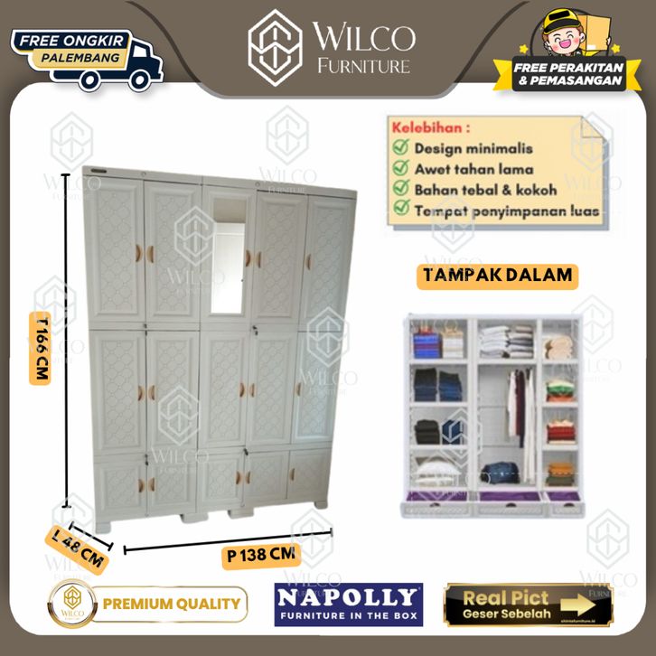 Terlaris Lemari Pakaian Napolly 5412 DC ION / Lemari Baju 5 5515 DC ION Pintu Plastik Minimalis Elegan