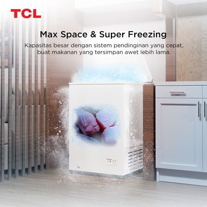 TCL Chest Freezer Kapasitas 100 Liter Super Freezing - Storage Basket Besar - Pemban Limbah Air - Lampu LED - Child Loc