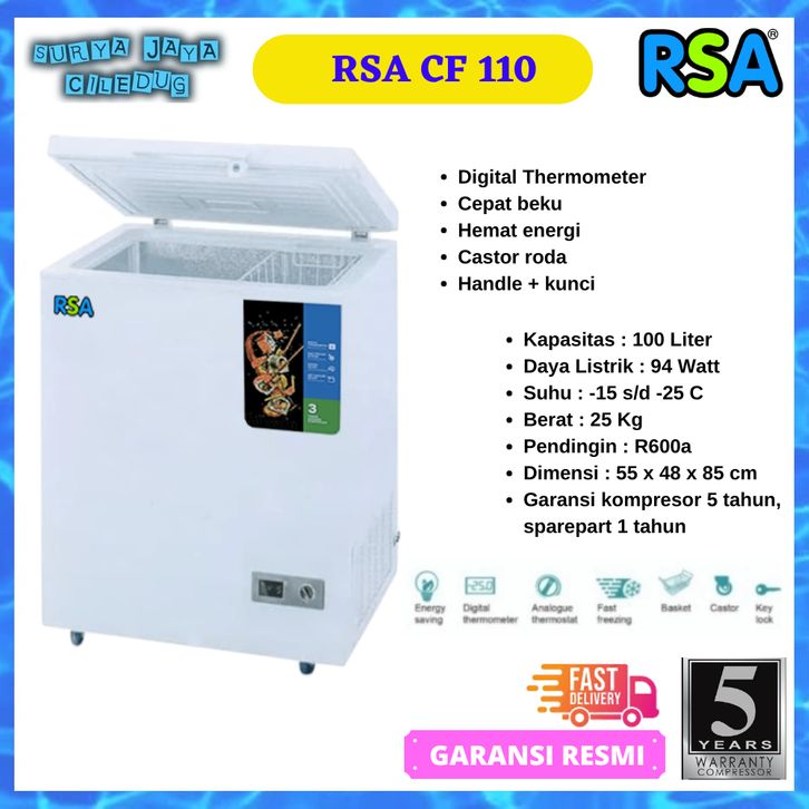CHEST FREEZER RSA CF110 , CF 110 FREEZER BOX KAPASITAS 100 LITER BUAT FROZEN FOOD , DAGING GARANSI RESMI - JABODETABEK