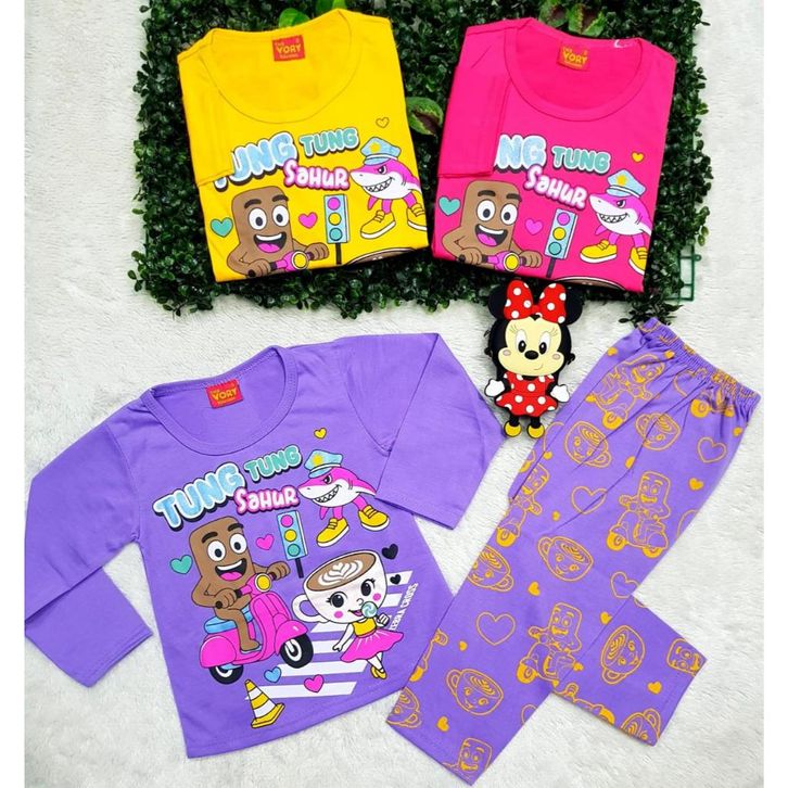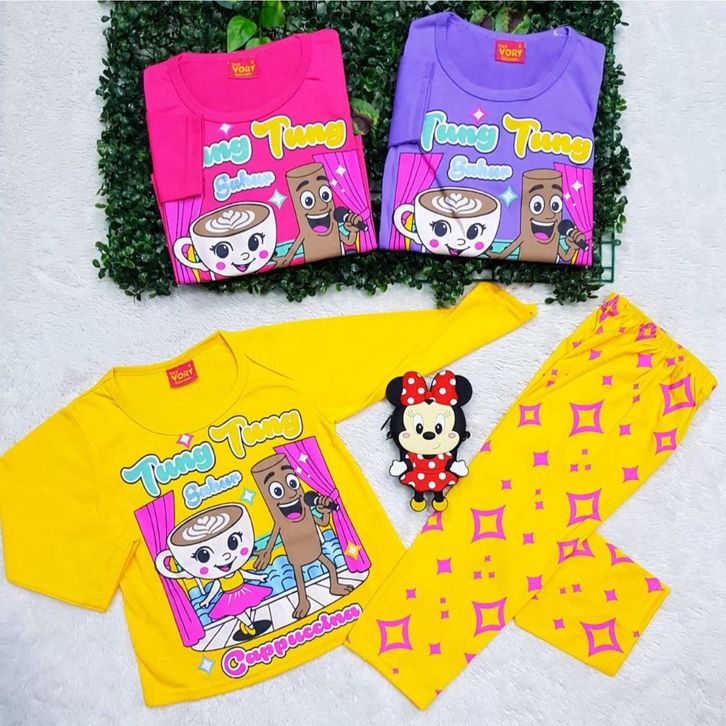 Setelan Anak Perempuan Gambar Tung Tung Saur Buat Usia 2-10 Tahun Baju Anak