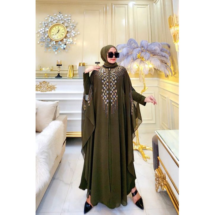 Baju Muslim Wanita Gamis Abaya Turkey Model Kaftan Swarovski Mewah Terbaru Elegan Kekinian VIRAL