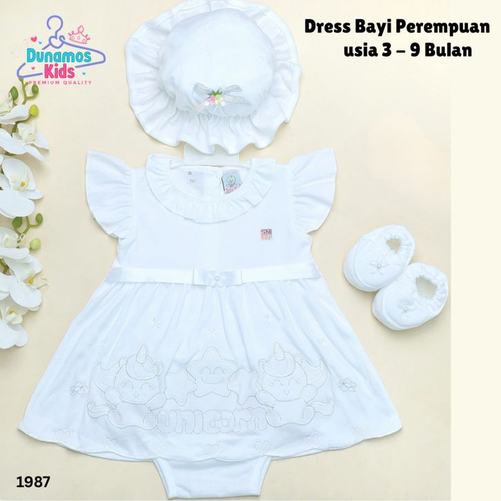EKSKLUSIF Dress Bayi Perempuan 3-9 Bulan set dengan Topi & Sepatu - Bahan Lembut, Desain Cantik untuk Acara