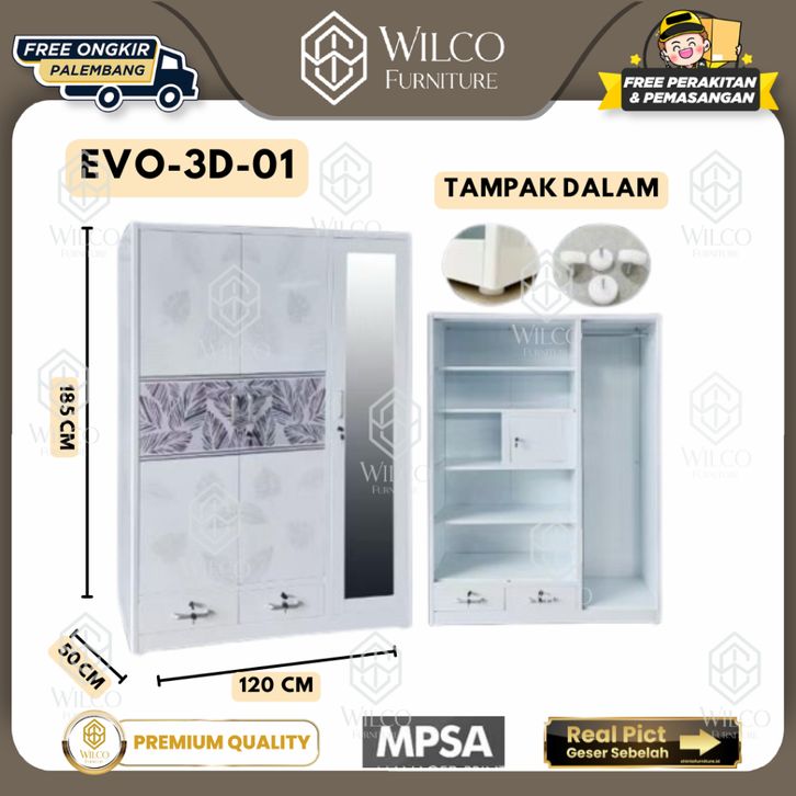 Terlaris Lemari Pakaian 3 Pintu MPSA Plat Besi | Lemari Pakaian Kaca Lurus 120 Cm | Lemari Besi 3 Pintu Murah Palemban