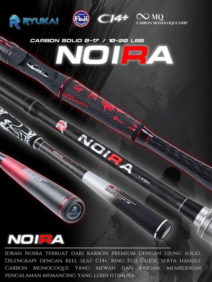 Joran Spinning Carbon Solid Fuji C14+ Monocoque Sambung 2 8-17 10-20 lbs 180 198 cm Ryukai Noira