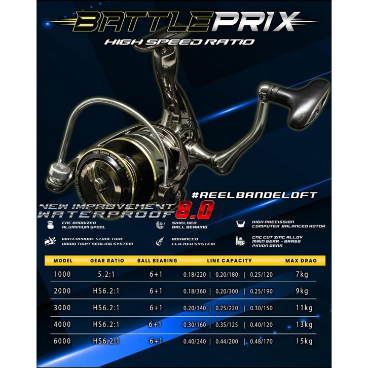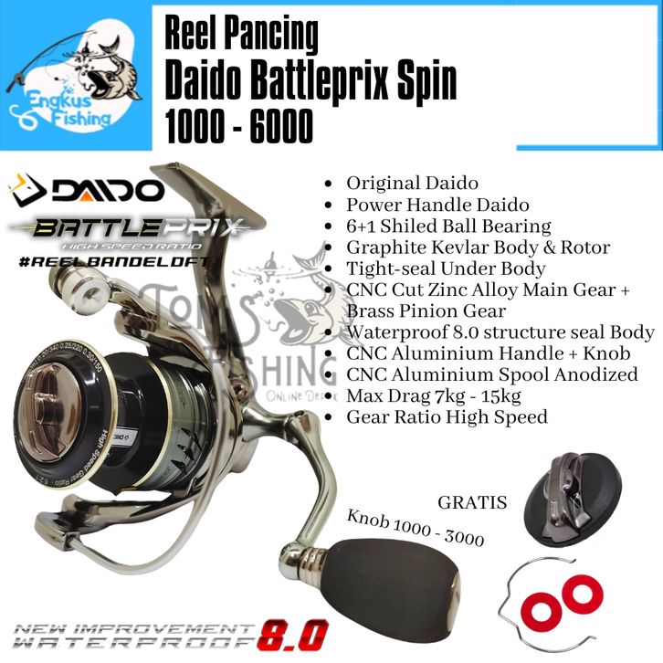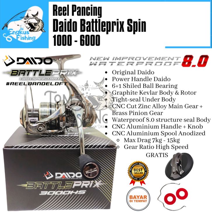 Reel Pancing DAIDO BATTLEPRIX 1000 - 6000 HS Waterproof 8.0 (6+1 Bearing) High Speed - Engkus Fishing