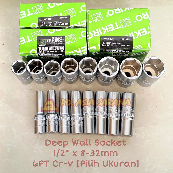 PREMIUM ! DEEP WALL SOCKET 1/2" X [8-32MM] TEKIRO 6 PT PANJANG INCH MATA KUNCI SOK - 8MM ORIGINAL