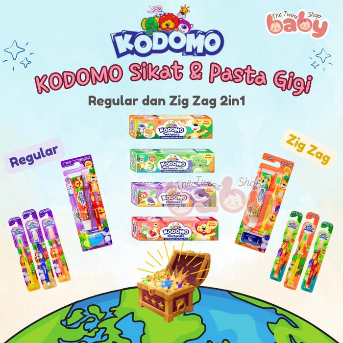 KODOMO Pasta & Sikat Gigi | Set 2in1 Zig Zag / Reguler - Odol Anak - KMO-Odol Orange