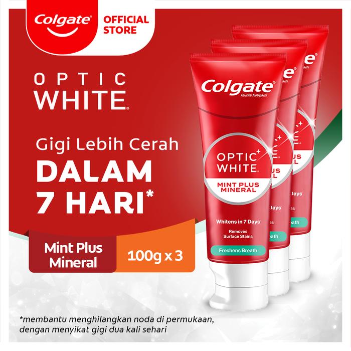 Colgate Pasta Gigi Optic White Mint Plus Mineral 100gr - Isi 3
