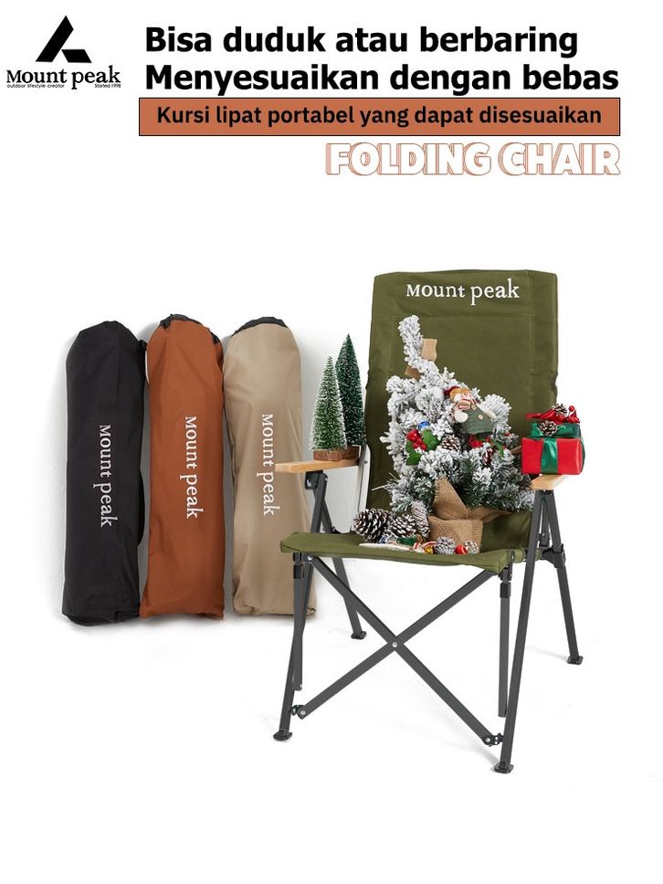 Mount Peak Kursi Lipat Luar Ruangan, Kursi Santai Portabel, Kursi Santai Sandaran Pancing, Kursi Pantai Baja Karbon Dapa