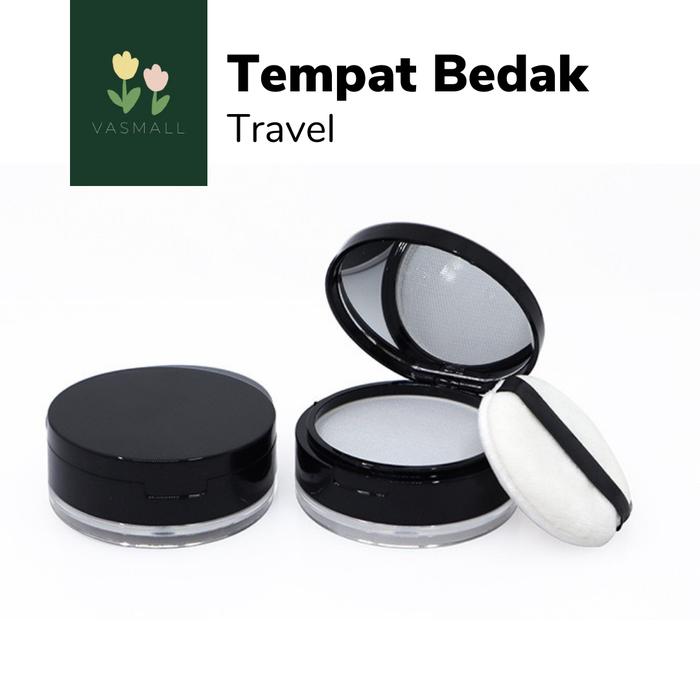VASMALL - TEMPAT BEDAK TABUR | TEMPAT LOOSE POWDER FREE SPONGE | WADAH BEDAK TRAVEL - Krem 8 gr + Puff