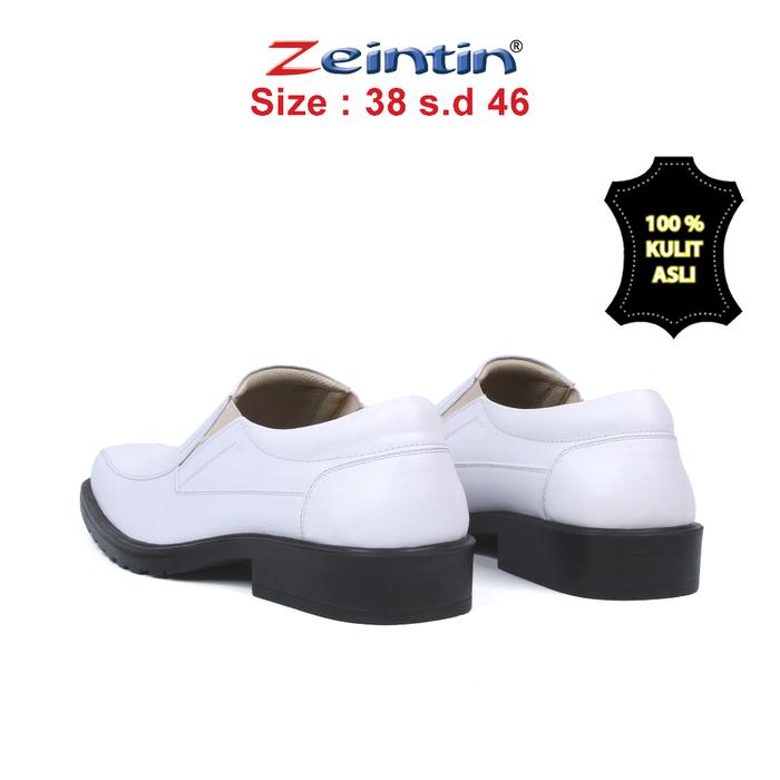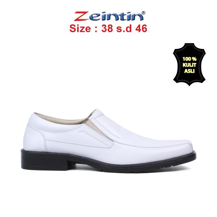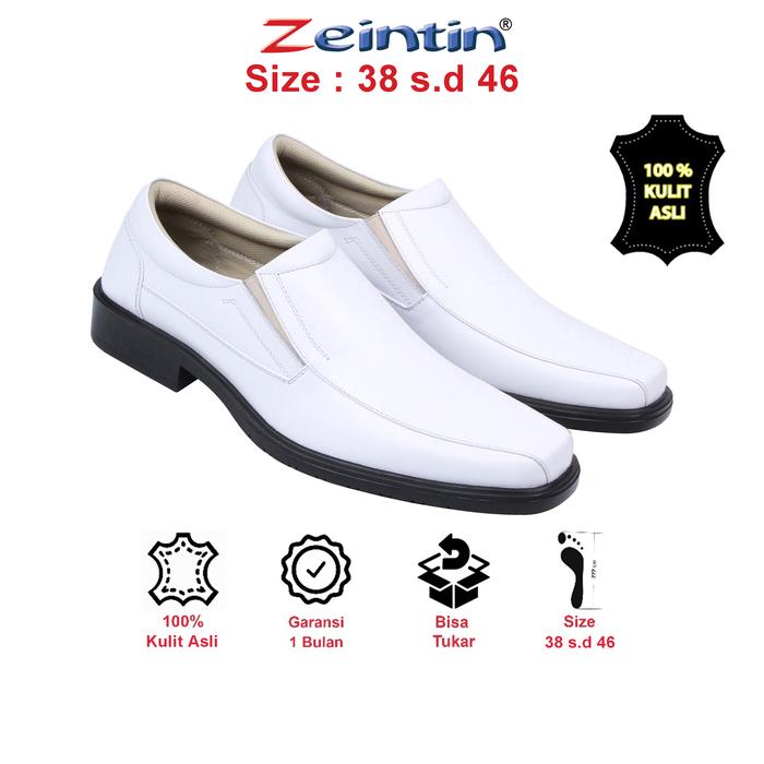 Sepatu Pantofel Zeintin - Sepatu Pantofel Putih Pria Kulit Asli Round Toe Hak Datar (2 cm atau