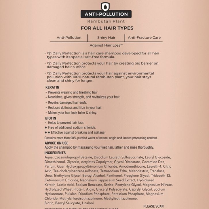 DP Daily Perfection Bio Barrier Shampoo Rambutan Plant Anti Pollution - Salt Free Shampo SLS Free Sulfate Free Bebas Ga