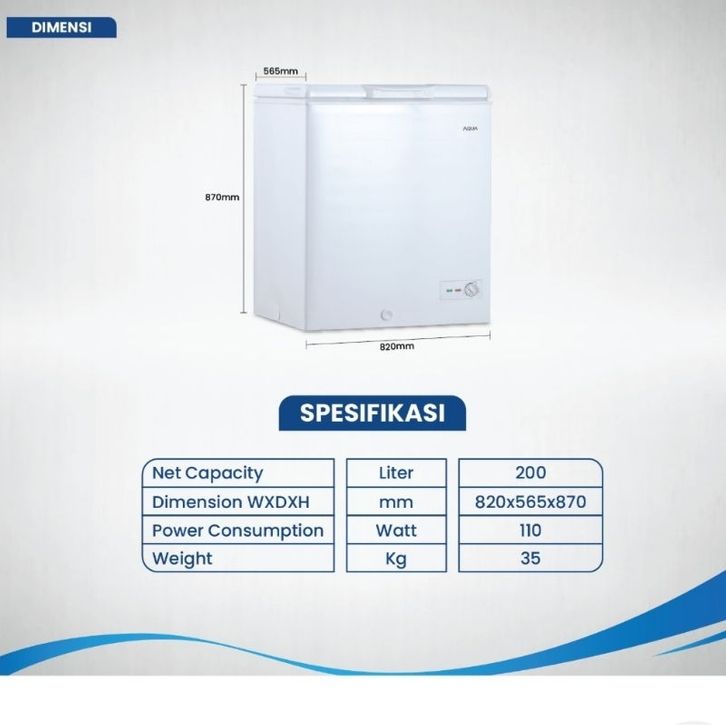 PROMO Chest Freezer AQUA AQF-220HC 200 Liter AQF220HC Freezer Box AQF 220 HC ORIGINAL