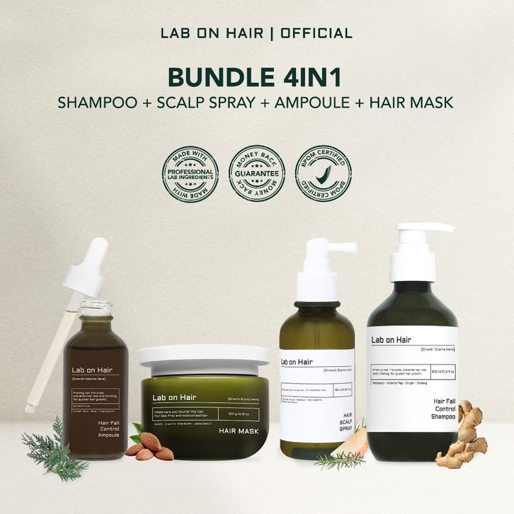 Lab on Hair Bundle 4in1 Shampoo + Ampoule + Scalp Spray + Hair Mask - Paket Lengkap Perawatan Rambut Untuk Menjaga Kese