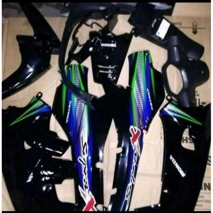 TERLARIS Body Full Set/Cover Full Set Body Kasar Halus Supra X Lama Hitam Striping Hijau