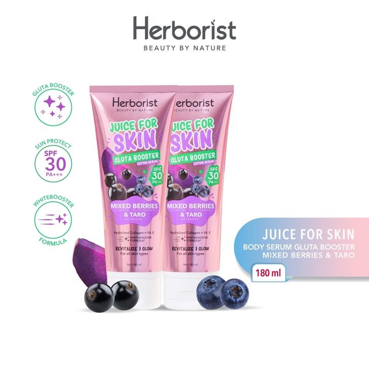 Herborist Juice For Skin Gluta Body Serum SPF 30 Mixed Berries & Taro 180ml x2